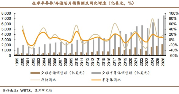 该机构示意,存储芯片是半导体行业中第二大细分阛阓,字据半导体泰斗机构WSTS的数据,2024年人人半导体阛阓为6305亿好意思元,其中存储芯片阛阓为1655亿好意思元,占统共半导体阛阓的 26%,是仅次于逻辑芯片的第二大细分领域。