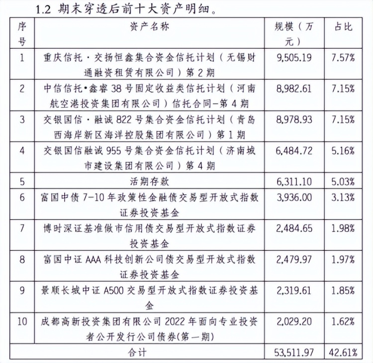 “稳享添福5年阻滞式2号养老本心产物”的第三季度叙述浮现,其减配债券,加多权利类投资和公募基金,前十大资产明细中,新进“富国中证 AAA 科技立异公司债交往型通达式指数证券投资基金”和“景顺长城中证 A500 交往型通达式指数证券投资基金”。